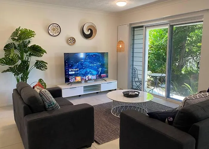 The spacious Beach, Shops & Strand 5 Min Walk Away features views of the garden and is situated approximately a 10-minute drive from Townsville Recreational Boating Park. Staying in this apartment, nestled just a short stroll from The Strand, guests can relax on a patio.